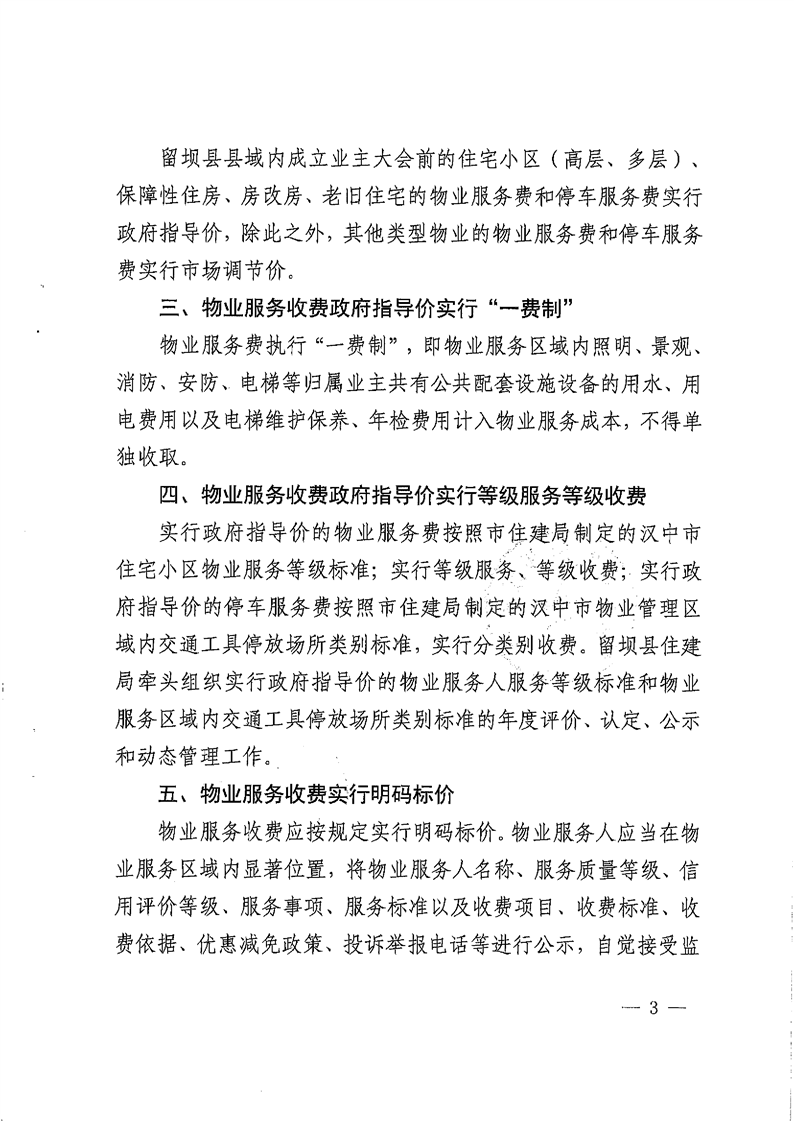 留壩縣物業(yè)服務(wù)收費(fèi)政府指導(dǎo)價(jià)標(biāo)準(zhǔn)(試行)