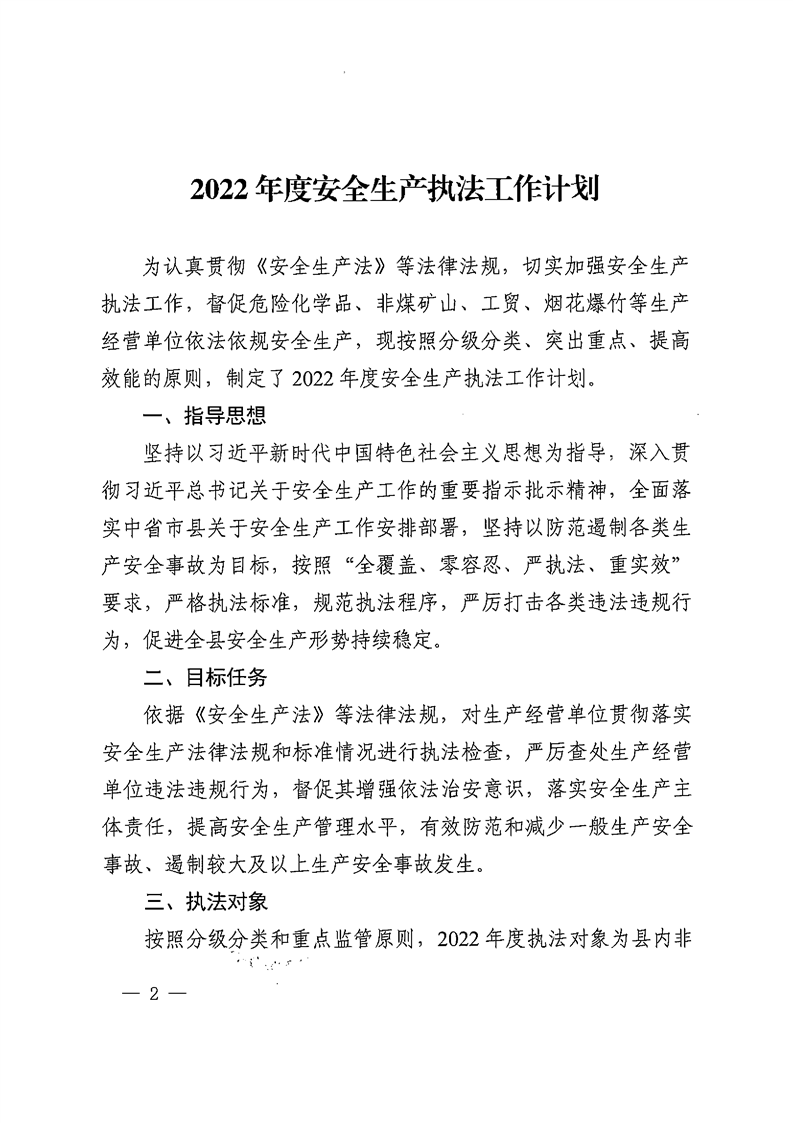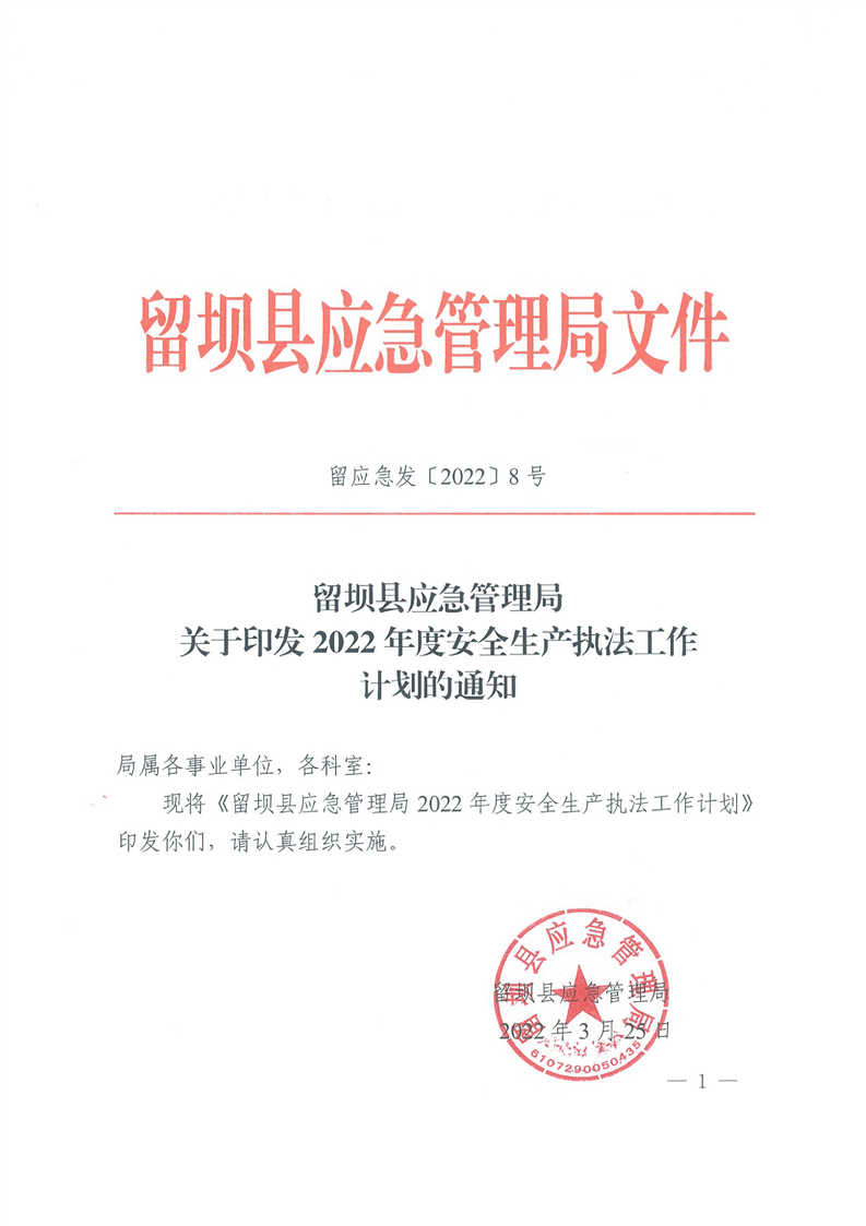 留壩縣應(yīng)急管理局2022年度安全生產(chǎn)執(zhí)法工作計劃