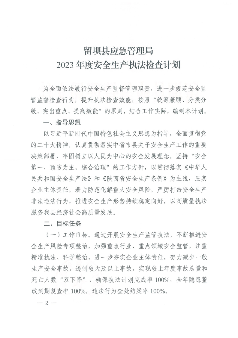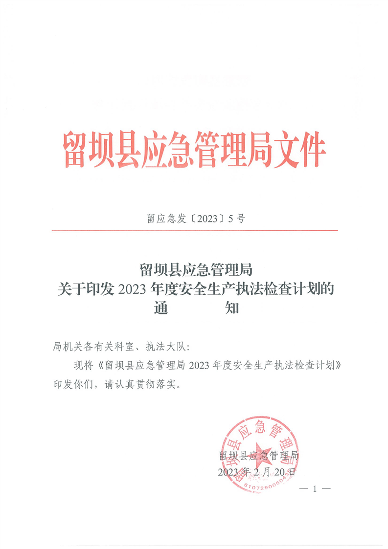 留壩縣應(yīng)急管理局關(guān)于印發(fā)2023年度安全生產(chǎn)執(zhí)法檢查計(jì)劃的通知
