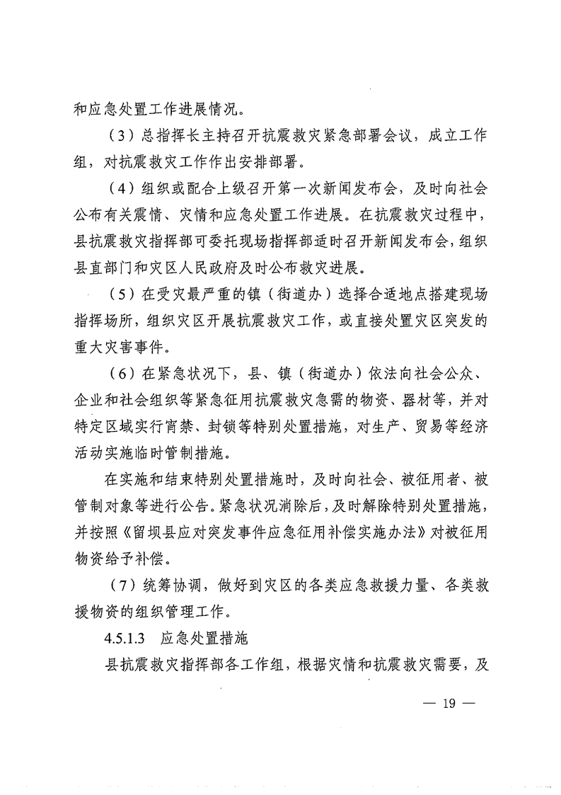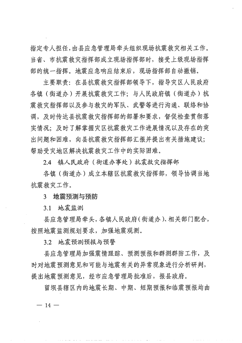 留壩縣防災(zāi)減災(zāi)委員會(huì)關(guān)于印發(fā)《留壩縣地震應(yīng)急預(yù)案(試行 )》的通知